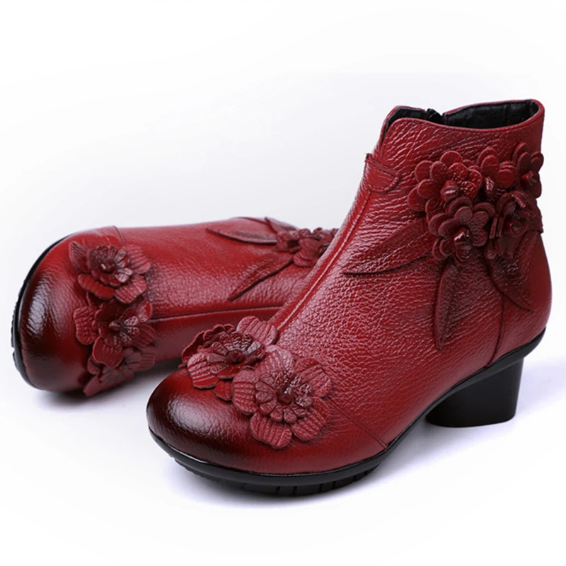 2019 New Arrival Vintage Boots Genuine Leather Ankle Boots New Winter Women Warm Shoes Soft Non-Sli