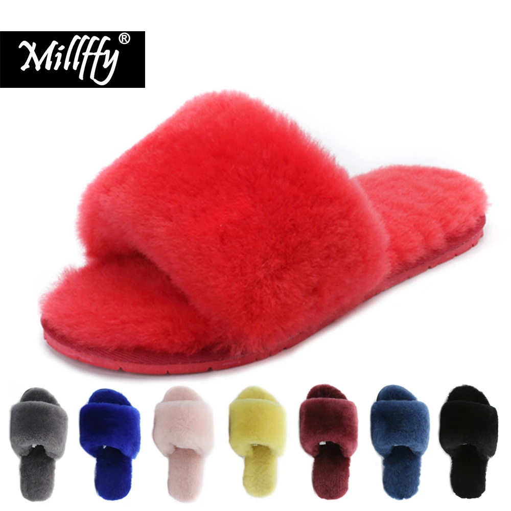 Review Millffy wool fur home slippers air conditioning room sheepskin slippers fur slippers home shoes wom