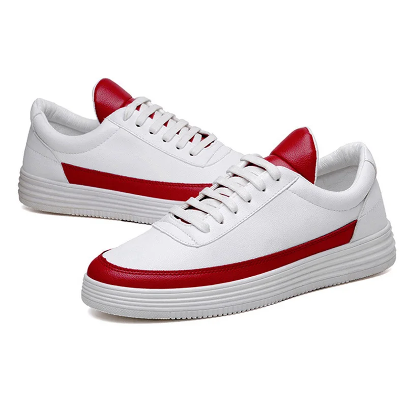 TOP Men Sneakers Soft Leather Casual Shoes Flat Fashion Brand Sneakers Men's White Shoes Black KA015